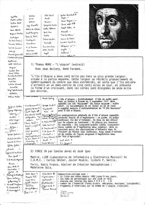 Producción del A.C.R., France Culture, Radio France, 1993, a partir de la obra realizada en el LIEM-CDMC, Madrid en 1992.