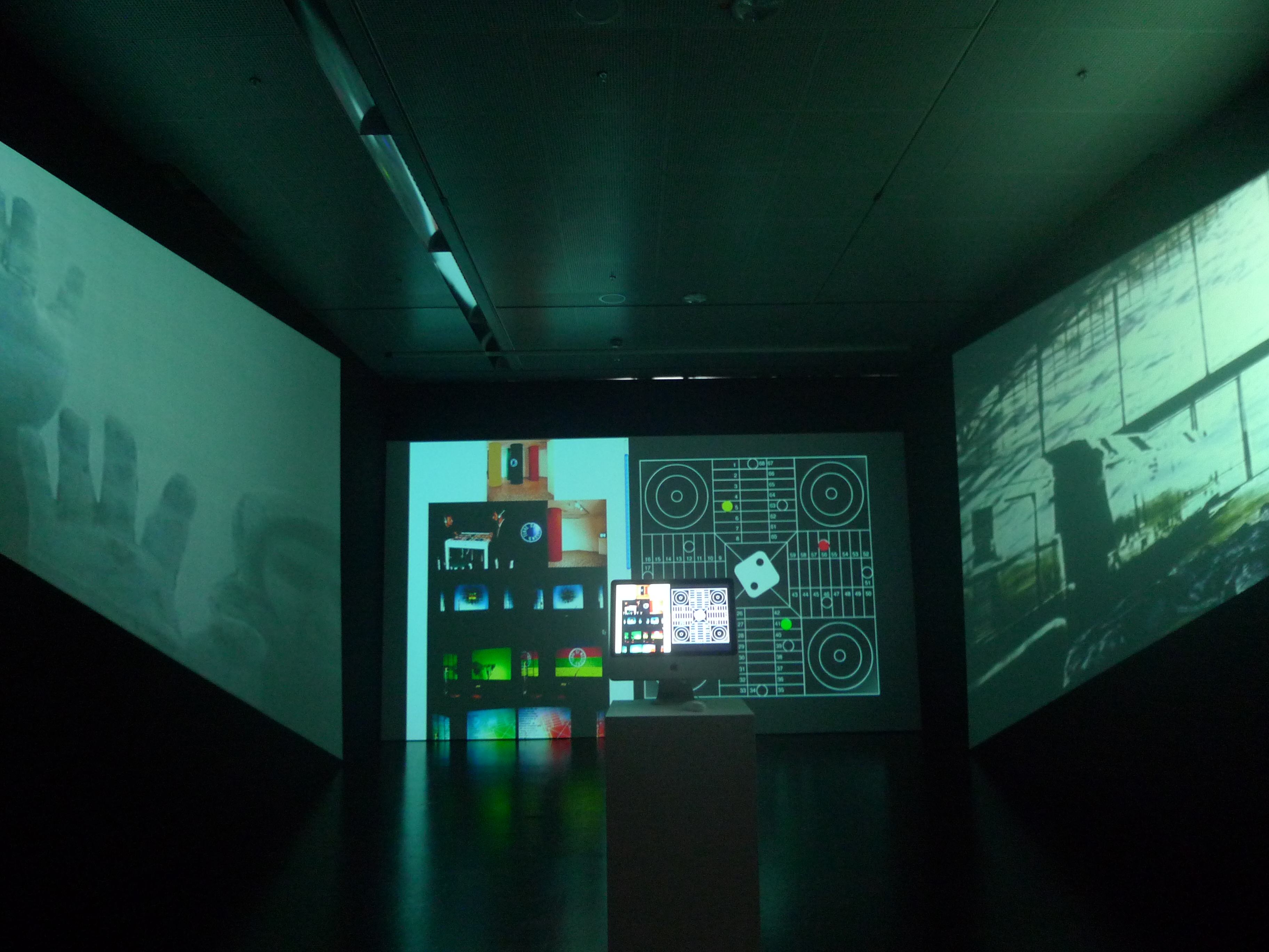 Nuestra obra pone al usuario ante noticias verdaderas que parecen falsas y ante noticias falsas que parecen verdaderas. Pero ésa es sólo una parte de la escenificación de ese campo de incertidumbres; ésta se produce con el despliegue de un conjunto de señales que invitan a la desorientación, cuando no a la desconfianza: gestos cuasi verbales, balbuceos que nada significan; banderas que no se corresponden más que con un lugar indeterminado llamado “terre di nessuno” acompañadas por himnos imposibles, remix de himnos auténticos y no por ello menos extraños al oyente; instrucciones al jugador que invitan a una actitud no competitiva cuando no abiertamente desconcertante; acotación del espacio instalativo con secuencias de vídeo que superponen espacios físicos diversos, y suprimen la alusión a un espacio real de referencia, pero a la vez provocando una ambigua y calculada sensación de espacialidad en la instalación.